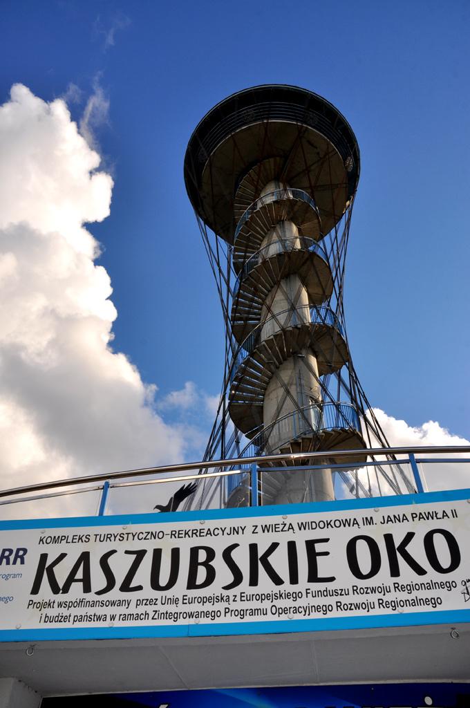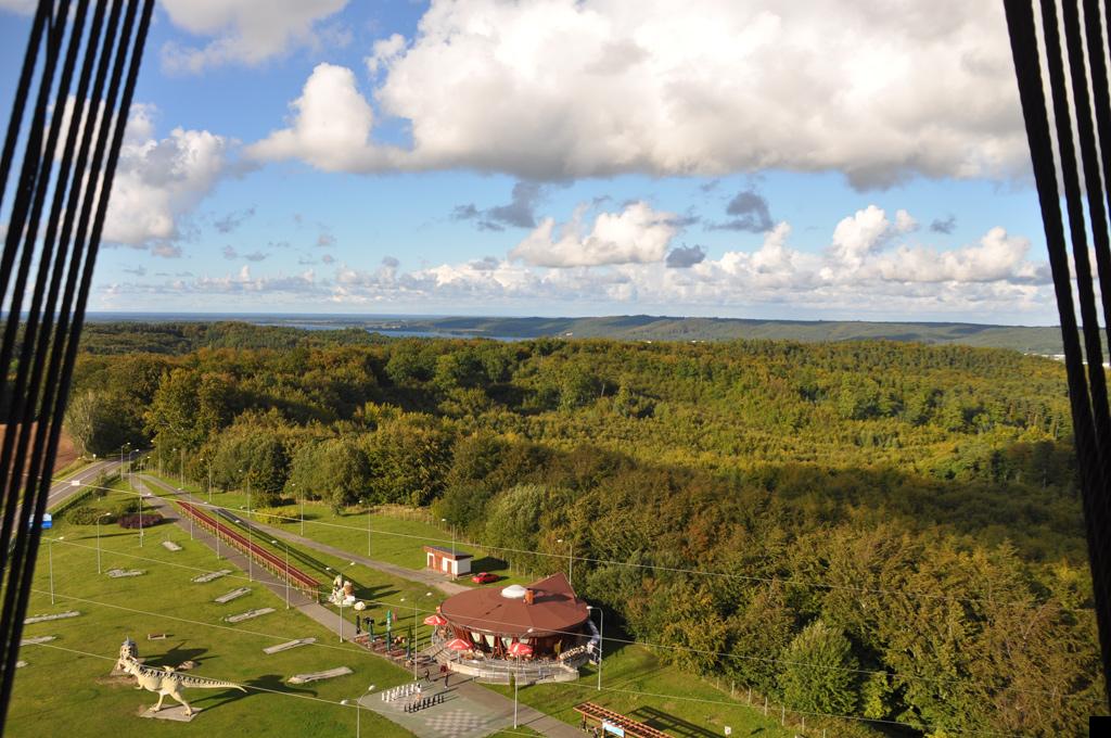- Widok na górny zbiornik wodny elektrowni wodnej w Żarnowcu z wieży widokowej „Kaszubskie oko”